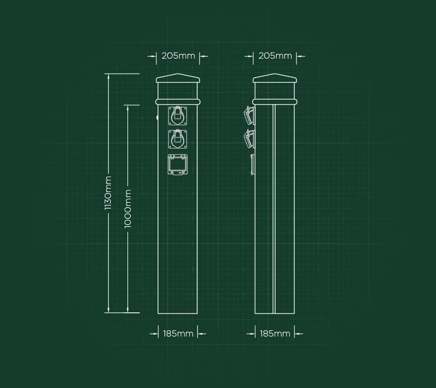A unique and hard wearing electrical hook-up touring pedestal, perfect for all caravan sites and park destinations
